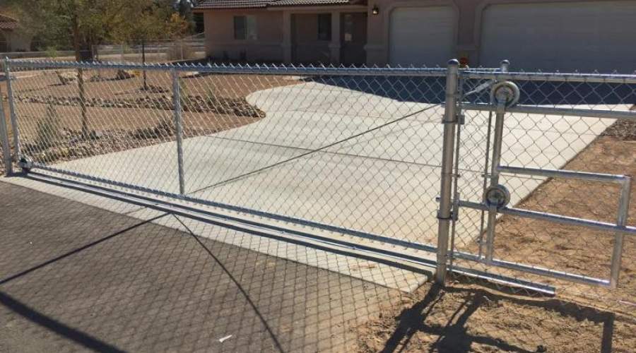 Upon getting a written quote from our salesmen and signing a contract, we schedule a date to start your custom chain link gate installation. Our backlog at that particular time will determine how long it will take to get your project rolling. For most jobs, it takes one day to set all the posts and another to stretch the wire and hang the gates. Remember, we make and install both swing and rolling custom gate installations.