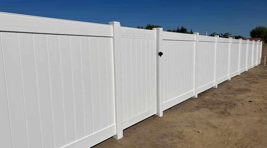 You can choose between a white vinyl privacy fence, a tan fence, or get a custom mix of the two